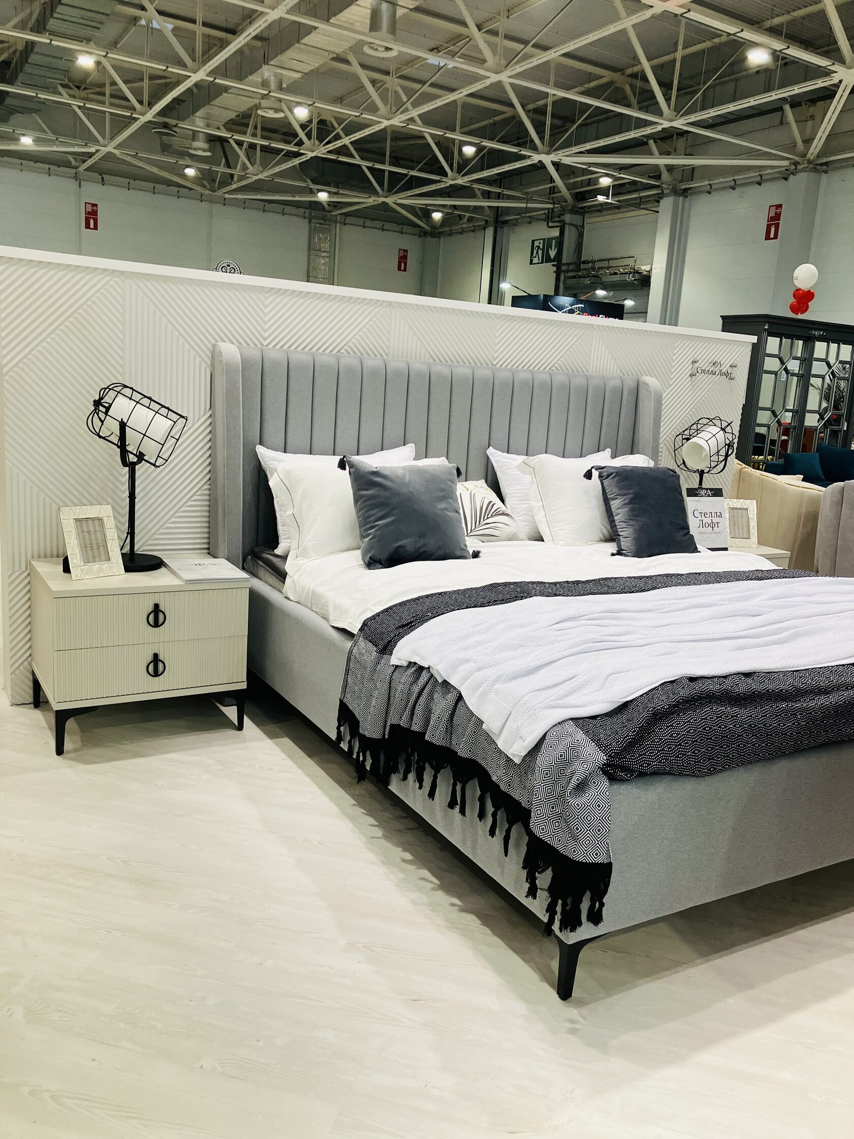 - Кровать - изголовье с "ушками" создаёт ощущение уюта и защищённости, корпус и изголовье текстиль серый